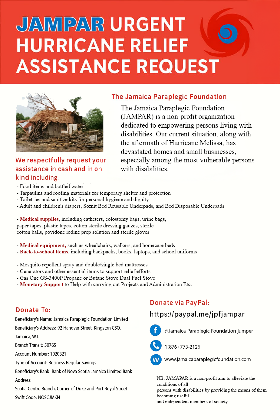 Support Jamaica Paraplegic Foundation (JAMPAR)