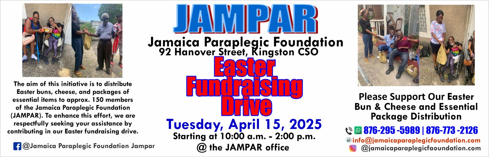 The goal of this initiative is to distribute Easter buns, cheese, and essential packages to 150 members of the Jamaica Paraplegic Foundation (JAMPAR). We believe that no one should be left out of the spirit of Easter, and your support can make that possible.